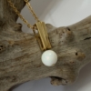 Attractive pendant with an opal bead. Solid Coober Pedy opal with a pinfire pattern orange, red and green, diameter 7mm and 2carats in weight. Moving underneath a gold bar design in 18karat yellow gold. Length 21mm, width 7mm. Matches with earrings J8189. Comes with a complimentary goldplated chain. Weight 1.47grams.