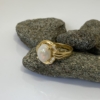Gorgeous dress ring with a soft coloured solid opal from Coober Pedy in South Australia, 7.4 x 9mm with a highdome of 4mm. Colours of orange, red and green. Weight 1.4carats. Claw setting with 4 diamonds 1 point each on one side. Setting 18karat yellow gold. Size L. Weight 3.9grams. Was $2,800 now $1,990